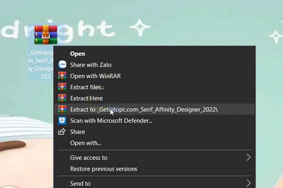 Bước 1: Giải nén phần mềm Affinity Designer 2022