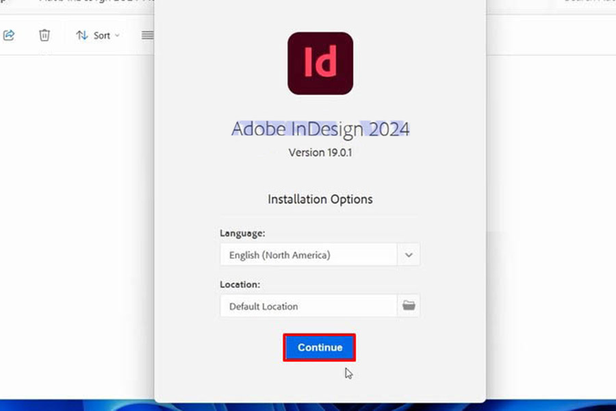 Bước 3: Chọn continue để tiếp tục tải indesign 2024