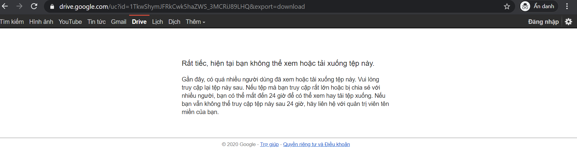 - Lỗi GOOGLE DRIVE BỊ GIỚI HẠN LƯỢT TẢI